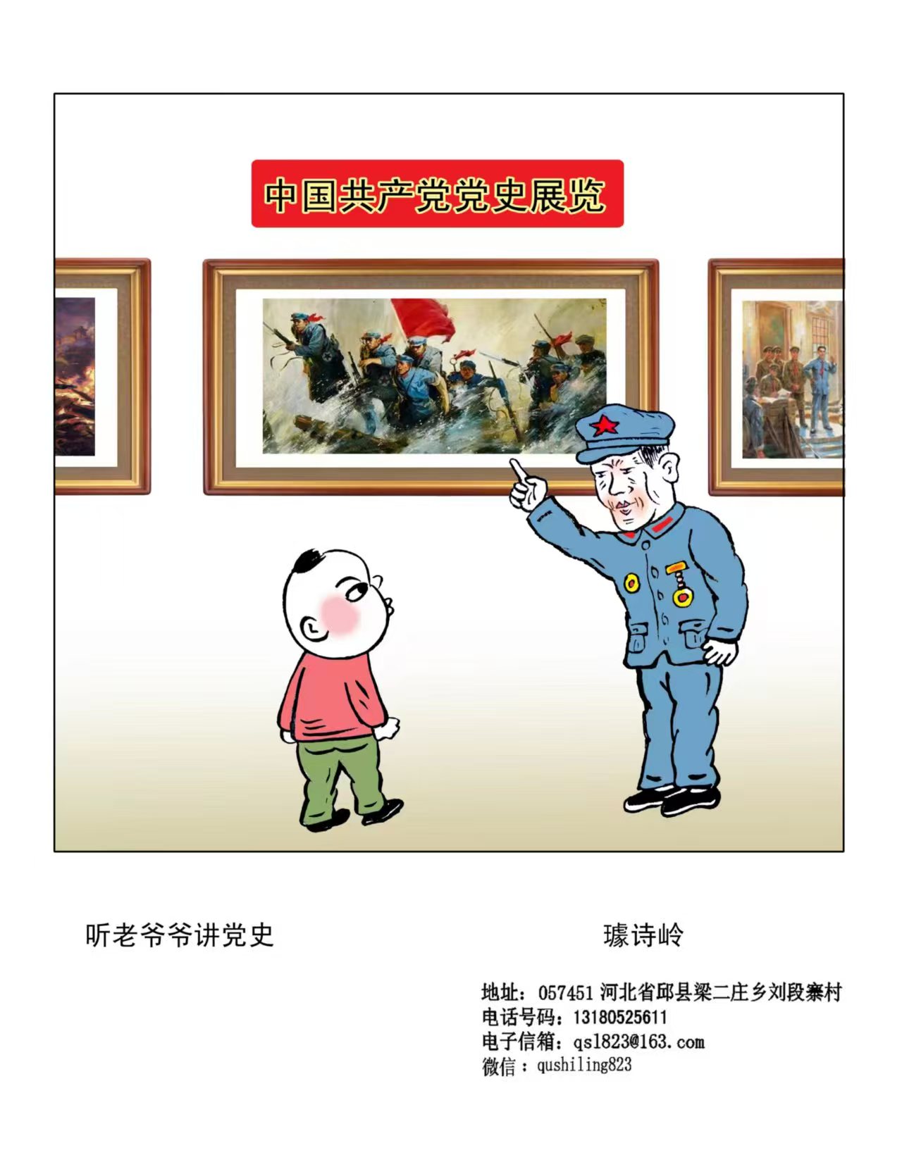 璩诗岭,男,汉族,1962年9月出生于河北省邱县。1984年参加陈跛子和李青艾二位老师创办的“青蛙”漫画组,开始漫画创作。现为中国美术家协会会员,中国民间文艺家协会会员,中国儿童漫画教学创作基地特聘教师,邱县 “青蛙”漫画组骨干成员。
