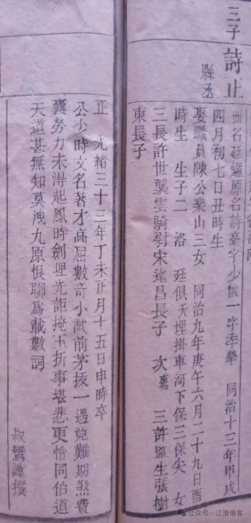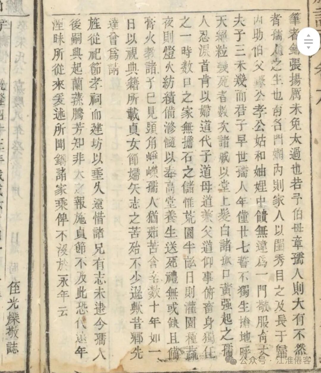 例授文林郎戊子举人杨洛鑑撰《璩母江孺人传》,让人十分感动于中国女性的伟大。早闻乡前辈明经璩绍杰,先生举拔萃科(拔贡),诗、古文、词心意气雄名重当世,后世再传家道中落,家声再振则赖有其曾孙媳江孺人,孺人配先荣先生,先荣中年而逝,遗孤子丹。子丹刚学会走路,孺人祷告于家庙,泣掷盃珓(占卜工具),曰:此子能否振璩氏,若不吉我早自甘死,占得大吉兆。桐西之俗喜弄狡狯,仇恨善良,尤其与寒门单丁为难。璩氏每传仅一人,江孺人惟恐子丹有失,守护甚严。子丹婴儿时即知母亲之不易,精心伺候母亲,不懂处,跪受母教。子丹自认命薄,功名不可求,止步于监生。孺人经历多次诉讼,找风水大师安葬先人,所择地皆吉壤。八十余岁将驾鹤西去时,手指子丹说,你现在有良田百亩,子三人,诸事皆有小成,我也知足了,但你先祖绍杰学行要有传人,你自己学业中道而废,必须让你的儿子择良师,学诗古文,让书香永续门第,说完孺人即离世,卒于光绪十三年十二月。